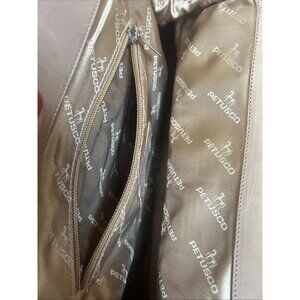 The PETUSCO Spanish Genuine Leather Made in Spain Brown Doctor Style Shoulder Bag is a stylish and high-quality handbag crafted from genuine leather in Spain. Featuring a solid brown exterior with a gold lining, this medium-sized bag exudes a vintage 90s vibe with its doctor style design. It includes a magnetic closure, beige leather handle/strap, and various accessories like a bag charm and bottom studs. With practical features like pockets and a convenient shoulder strap drop, this Petusco bag is perfect for women looking for a unique and timeless accessory.