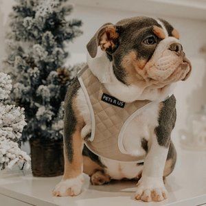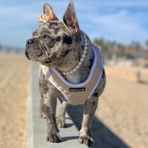 PETsRUS Step In Vest Dog Harness Quilted Vegan Leather Breathable Mesh Taupe