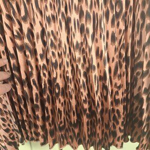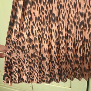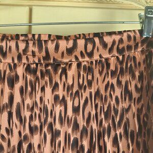 PEYTON JENSEN Pleated Animal Print Salmon Pink Black Midi Skirt Silky Size Small