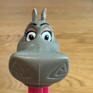 Gloria the Hippo PEZ from the DreamWorks, Madagascar Collection. Gloria is the nuanced tetartagonist, girlfriend to Melman and formerly resided in NYC Central Park Zoo. As can be expected from PEZ, the dispenser stands out with a vibrant pink stem and a sculpted detailed head.