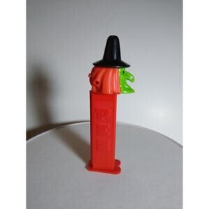 PEZ Witch Figural Candy Dispenser Plastic Halloween Green Orange Black Hat