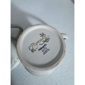 Enjoy the cozy vibes of fall with this set of two Pfaltzgraff Plymouth mugs. Each mug features a warm cream hue that perfectly complements the seasonal ambiance. Crafted for both coffee and tea enthusiasts, these mugs are an ideal addition to your daily routine or to welcome guests on a chilly autumn day. The durable design ensures these mugs are a practical choice for your morning brew or evening tea, while the classic Pfaltzgraff styling adds a touch of elegance to your home. Whether it's for your own collection or as a thoughtful gift, these mugs are sure to be cherished.