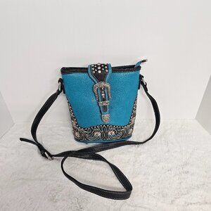 P&G Turquoise Faux Leather Western Bling Rhinestone Crossbody Bag