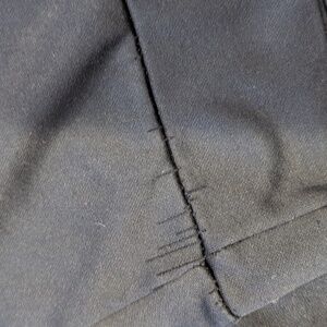letters starting the crack, stain on back of both sleeve, front pocket seam is pulling off, runs on end of sleeve. no drawstring. all pictured