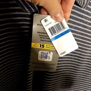 PGA men’s new grey white striped short sleeve golf polo XL. New condition. Measurements are: 31” from shoulder to hem, and 25” from armpit to armpit.