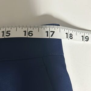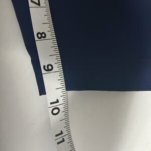 Blue shorts with side slit and single thigh pockets. Rear pockets with small marks due to manufacturer sales tag. Zipper/button closure. Belt loops. Size 34. No material tag. Non smoking home. v