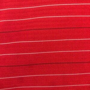 Size medium men's PGA Tour red, white, black striped polo golf shirt. There is a slight texture to the shirt for added interest.