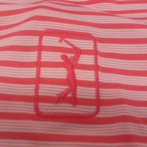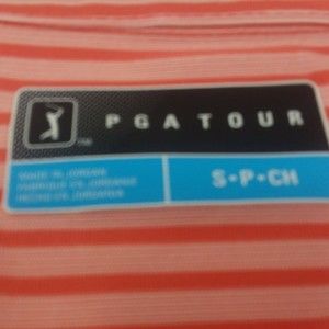 PGA TOUR New Mens size Small Striped Motionflux Polo Shirt Red Collar Logo MSRP $60.00 Approximate Measurements Laying Flat: