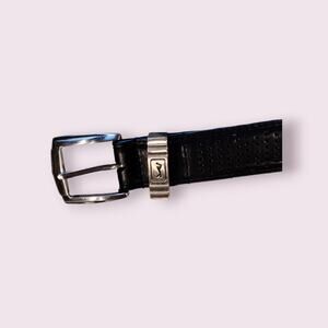 PGA TOUR Sz 36 Black Perforated Leather SPORT BELT, Chrome Buckle w/LOGO on Loop