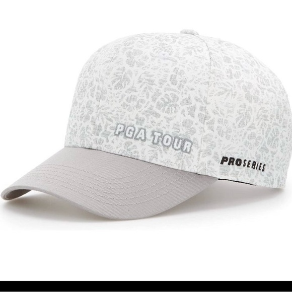 Elegant PGA Tour hat in white and gray. Ideal for golf fans.