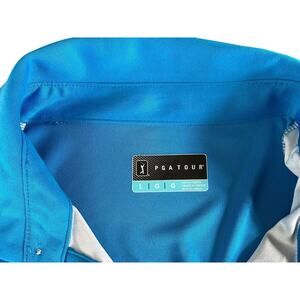 Upgrade your golf wardrobe with this stylish PGA Tour polo shirt. Featuring a vibrant blue color with a sleek stripe detail across the chest, this polo is designed for both performance and comfort. Crafted from 100% polyester, it offers moisture-wicking properties to keep you cool and dry on the course or during casual outings. The lightweight, breathable fabric ensures unrestricted movement, making it a great choice for active wear.