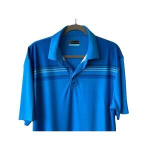 PGA Tour Golf Polo Shirt Blue Striped Performance Moisture Wicking Men's Large