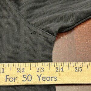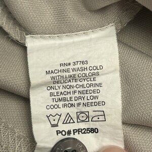 Good Condition. No rips, holes, stains, or odors. There are a few minor pulls in the material, does not affect the wear of the shirt. Both are a size large and100% polyester. The tan polo is made in Vietnam and 45" chest, 28" length. The black polo is made in Joran and 47" chest, 26" length.