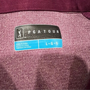 PGA Tour Golf Short Sleeve Polo Shirt Golfing Polo Shirt, Men's Size Large, See the pictures showing the measurements, Striped Shirt, Maroon color, Moisture Wicking, Quick Drying, Lightweight & Breathable 100% Polyester Material, Side Slits, Pullover with Button Collar, Washes Nice, Embroidered PGA Logo on the Sleeve, Extra Button attached to inside tag, Neutral Color matches nice with your shorts or slacks, Perfect Blend of Comfort & Style, Official Licensed Apparel, Style# RN37763 CA55972, Excellent Pre-owned Condition