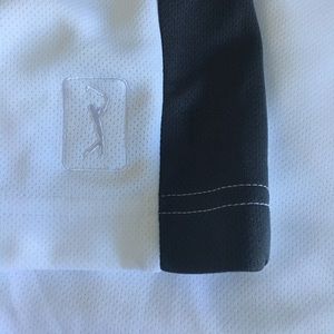 PGA Tour Men's Air Flux Golf Polo Size L, polyester, white and charcoal gray, good condition