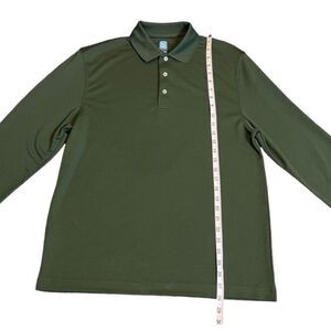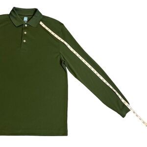 New with tags condition measurements and photos are approximate only taken laying on a flat surface Size M Color name KOMBU GREEN 100% polyester Men's AirFlux™ Mesh Golf Polo New with tags AIRFLUX™ Innovative Ventilated Fabric MOISTURE WICKING SUN PROTECTION STRETCH SHOULDER SEAMS Airflux innovative ventilation for ultimate comfort Mesh fabrication for breathability Moisture wicking helps keep you feeling dry Sun protection helps to block damaging UV rays Stretch shoulder seams for freedom of movement Polo collar Solid color design for easy styling