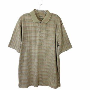 PGA Tour Mens Beige Striped Golf Polo Shirt Size L Short Sleeve Activewear Trip