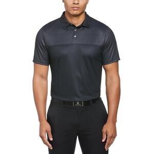 PGA Tour Men's Black Block Print Athletic Fit Short Sleeve Polo Shirt Size S