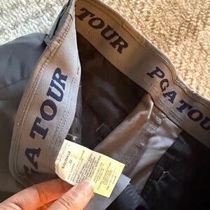 Sleek charcoal shorts by PGA Tour. Ideal for casual wear. Flat front design.