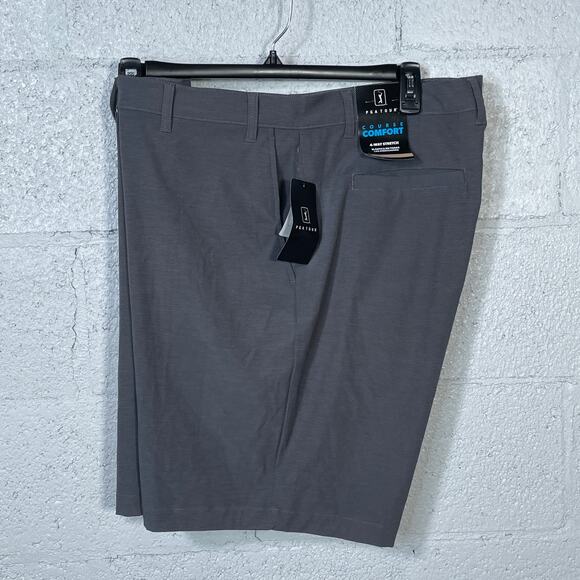 PGA Tour Men's Flat-Front 4-Way Stretch 9" Shorts DK grey Heather, 42