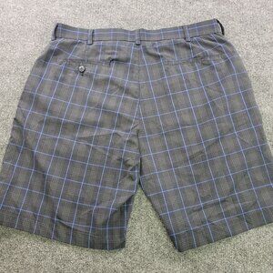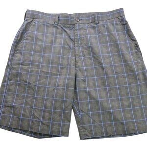 PGA Tour Mens Golf Shorts Plaid Size 34 Gray Blue Poly Flat Front Pockets Casual