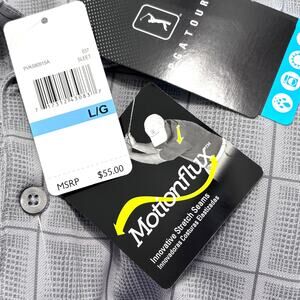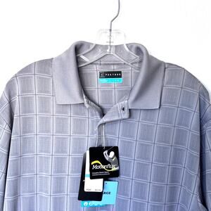 PGA Tour Men's NWT Large Gray Windowpane Plaid Golf Polo Shirt Motion Flex