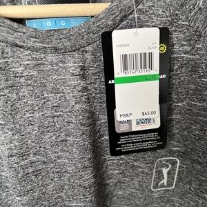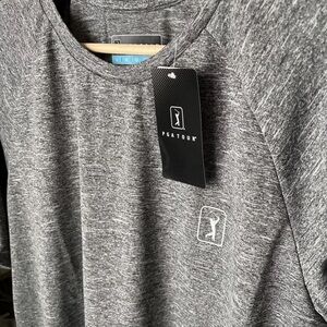 This PGA Tour Performance T-Shirt is the perfect addition to any golfer's wardrobe. Made with high-quality materials, this grey shirt is designed for comfort and performance on the course. Moisture wicking, stretch fabric & easy care. The shirt is available in size L and has never been worn, with tags still attached. MSRP $65.00
