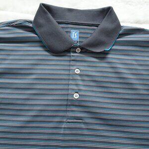 PGA Tour Men's Polo Blue Large Airflow Stripe Armpit to Armpit is 22" Length is 29" Great Condition