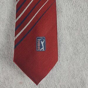 PGA Tour Men's Red, Blue, Silver Striped 100% Silk Necktie