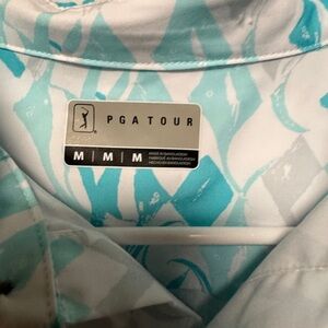 PGA Tour Men's Short Sleeve Button-Front Performance Argyle Fish Shirt Size M