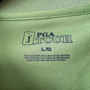 Add style and comfort to your wardrobe with this PGA Tour polo shirt. The green shirt features a collared neckline and a pullover closure, making it suitable for various occasions like activewear, casual outings, and business meetings. The shirt is made of lightweight, breathable, and moisture-wicking mesh fabric to keep you cool and dry during summer, fall, or spring seasons. The men's shirt is machine washable and easy to care for, making it a perfect addition to your sports-themed clothing collection. The shirt comes in a regular fit, with short sleeves and a solid pattern. It is suitable for golfers, sports enthusiasts, and anyone who loves sports-themed clothing. Get this PGA Tour polo shirt today and add it to your wardrobe!Golf