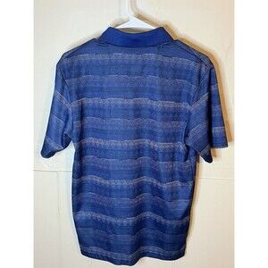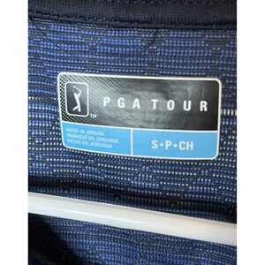 1 Pre-owned PGA Tour Men's Small Blue & Black Striped Short Sleeve Dri Fit Polo Shirt. Made in Jordan, 100% polyester, machine washable. Replacement button is included on tag. Polo shirt in great condition with minor signs of wear. No visible stains or imperfections. Stored in a smoke-free home. Ready to ship! Always down to bundle items together. Feel free to reach out with any questions or offers!
