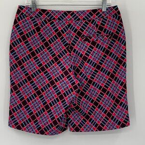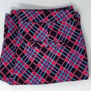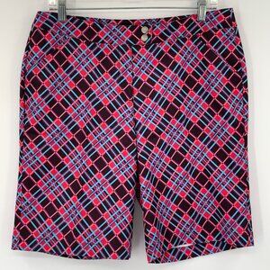 For sale is this PGA Tour Pink, Teal and Black Vibrant Colors Geometric Plaid Diamonds Bermuda Women's Golf Shorts Size 10.