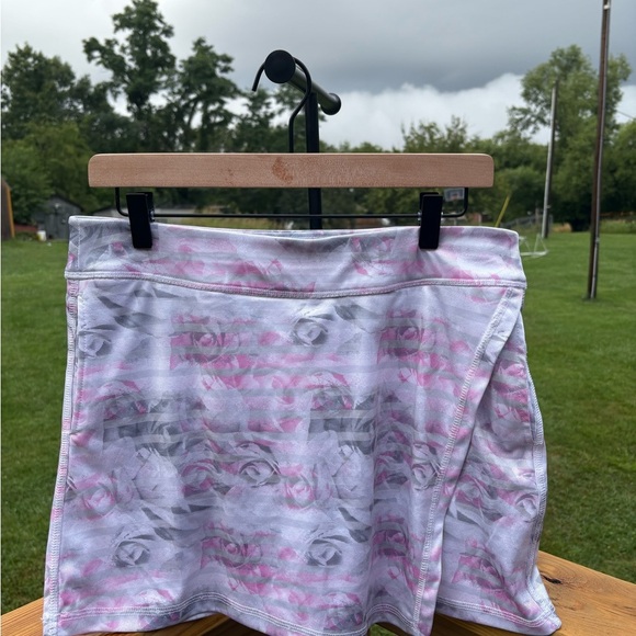 Chic skirt with pink and white design. Ideal for golf or casual wear. Size Medium
