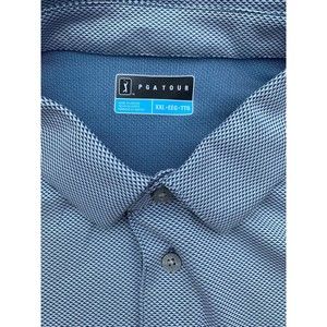 PGA Tour Polo Shirt Mens 2XL Blue Check Short Sleeves Golf Shirt XXL