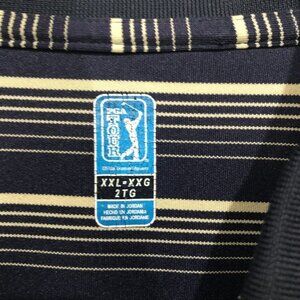 PGA Tour Polo Shirt Mens XXL Short Sleeve Blue Striped Stretch
