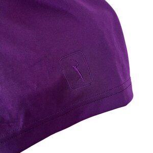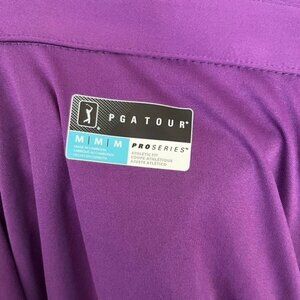 PGA Tour men's size medium 100% polyester purple Pro Series short sleeve polo shirt. Measures 28" long, underarm to underarm 22" (EE0172)