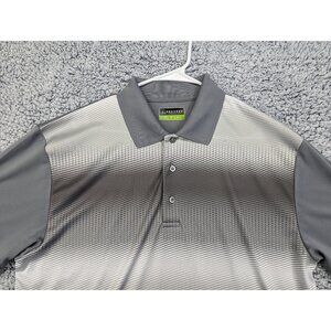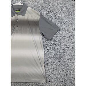 PGA Tour Pro Series Golf Polo Mens L Short Sleeve Striped Breathable Travel Grey