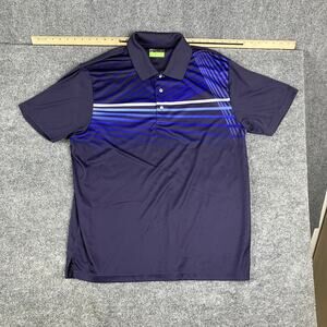 PGA Tour Pro Series Polo Mens XXL Purple Blue Striped Athletic Fit Golf Shirt