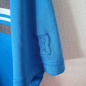 PGA Tour Pro Series US L Blue Striped Polo Short Sleeve Shirt Golf