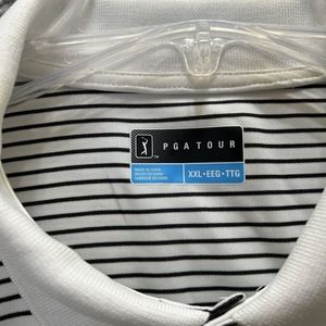 PGA Tour Shirt Mens XXL Black White Striped Polo Golf Embroidered Logo Athletic