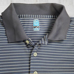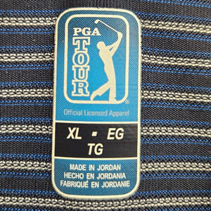 PGA Tour Slate Blue White Striped Golf Polo Short Sleeve Collared Shirt Size XL