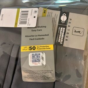 PGA Tour Golf flat front moisture wicking shorts Sz-44. New with tags in Grey (Quiet Shade) 100% polyester with sun protection & expandable waistband.