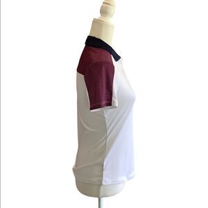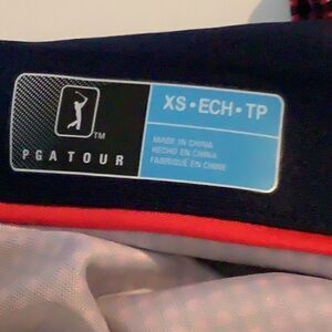 PGA Tour Golf Shirt in White Pink and Blue Pattern Size XS