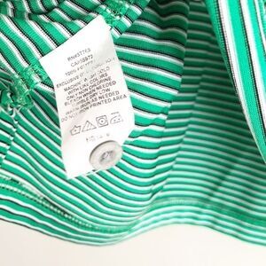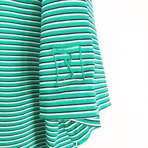 Green white and black stripe collared golf shirt. PGA Tour logo embroidered in the sleeve. Silky dry wick fabric - very comfortable!