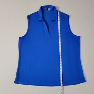 Women's shirt by PGA TOUR is designed to keep you cool and comfortable on or off the golf course. This sleeveless polo shirt features DriFlux, MotionFlux, and SunFlux technologies for enhanced dryness, range of motion, and sun protection. (Care/fabric label is missing, and info was obtained from website.) Top is in excellent, like new condition.