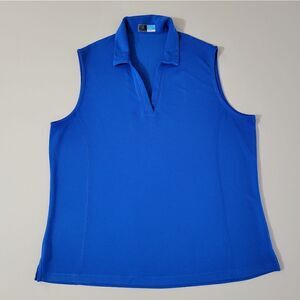 Women's shirt by PGA TOUR is designed to keep you cool and comfortable on or off the golf course. This sleeveless polo shirt features DriFlux, MotionFlux, and SunFlux technologies for enhanced dryness, range of motion, and sun protection. (Care/fabric label is missing, and info was obtained from website.) Top is in excellent, like new condition.