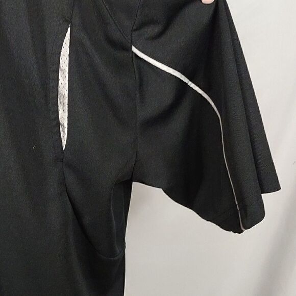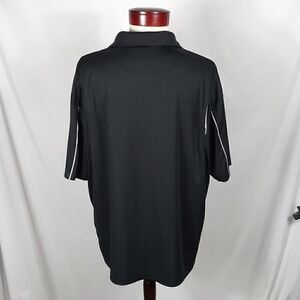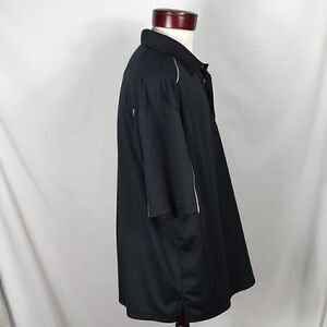 This black with silver reflective trim PGA Tour Pro Series short sleeve golf polo is a size 2X with a pit to pit measuring 28". This golf performance wear polo has breathable mesh behind each arm for cooling. 100% polyester and machine washable. Pre-owned and in excellent condition. All offers welcome.