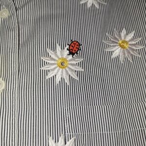 P.G.B. Black & White Daisy & Ladybugs Stripe Long Sleeve Button Shirt Large