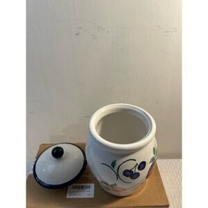 PH Princess House Orchard Medley Fruit canister medium 4” diameter. 6" tall. minor scuffs. good used condition.